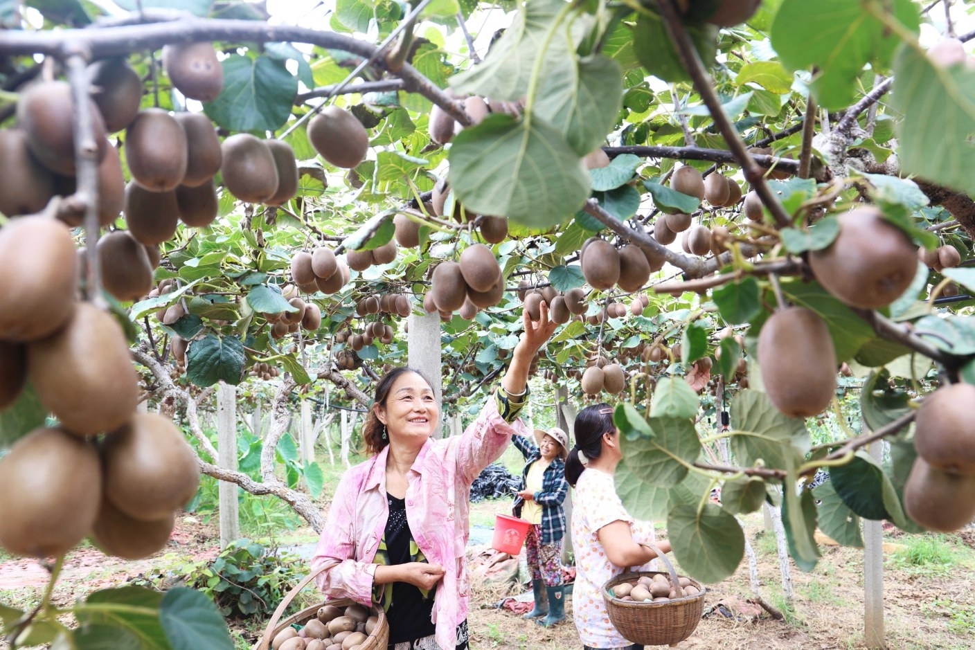 秋分将至,我市各地抢抓农时掀起了秋收高潮,田野里,一派繁忙景象。图为果农在山亭区西集镇辘井南庄村超远猕猴桃采摘园采摘猕猴桃。(记者 刘明 摄)