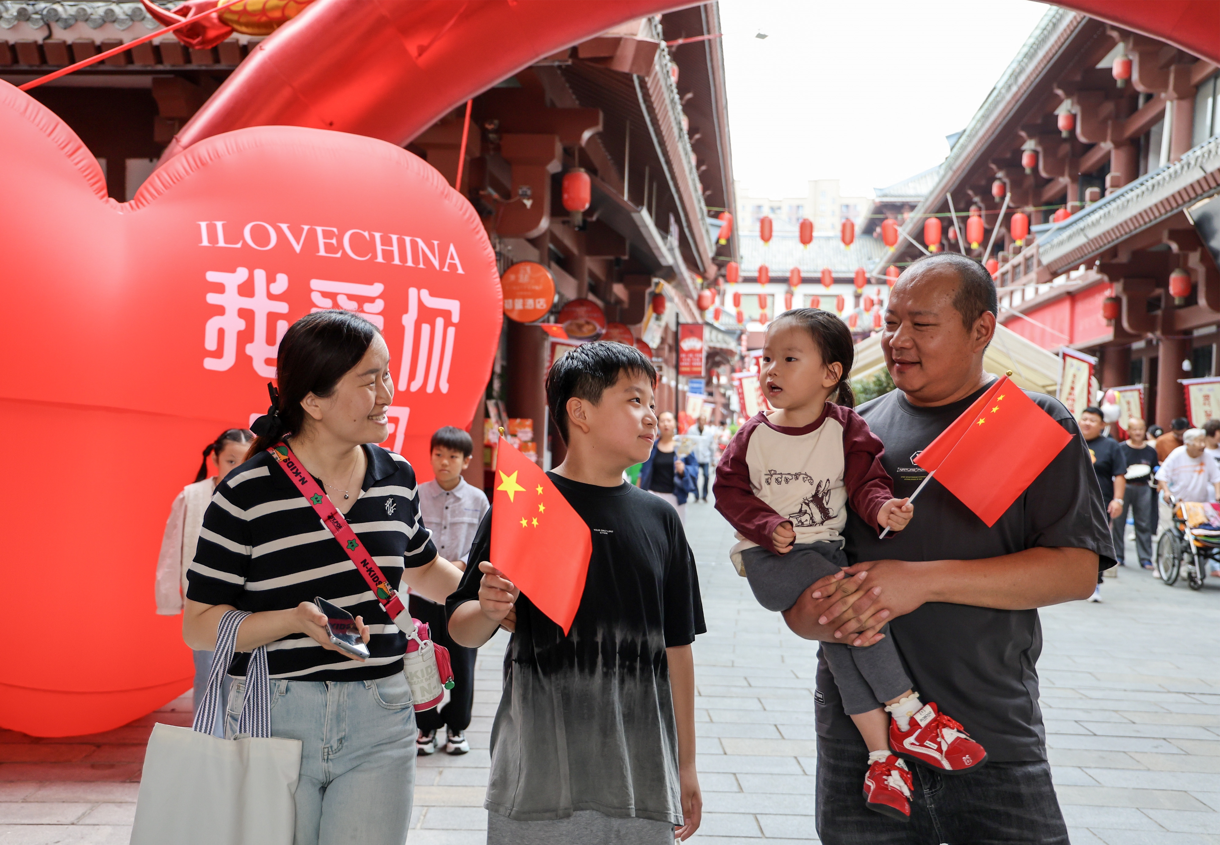 10月1日,滕州市龙泉街道庙会上洋溢着浓浓的节日气氛,吸引众多游客前来游玩,欢度国庆,乐享假期。